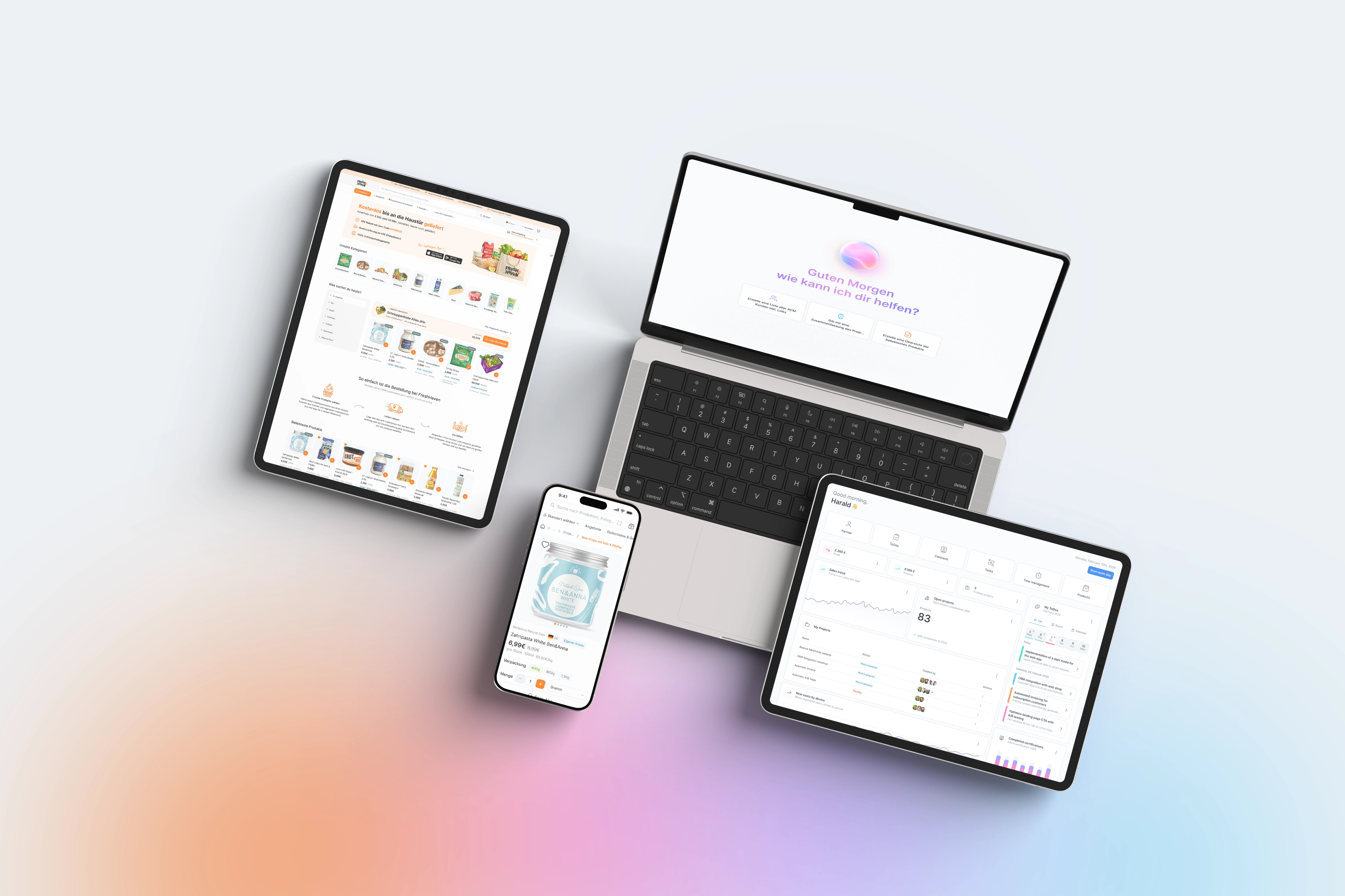 Individuelle Webshops mit Echtzeitdaten aus Lager, Preisen und Touren – direkt integriert ins ERP.